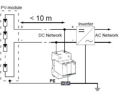 DS50PV-1000G/12KT1 surge protector is connected in parallel on the DC network