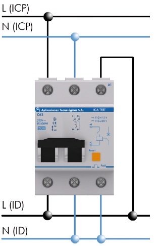 Cuộn bảo vệ phải được lắp đặt giữa dây pha và trung tính, ở hướng kết nối với thiết bị chống dòng rò (ID).