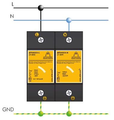 AT-8350 thích hợp cho các mạng điện TT, TN-C và TN-S, ATSHOCK L được lắp song song với đường dây hạ áp và thường được kết hợp với ATSHOCK N (bảo vệ trung tính) để tạo thành các bộ 1 pha hoặc 3 pha cho các tủ điện tổng và có thể kết hợp với các thiết bị chống sét khác như ATSUB và ATCOVER hoặc cuộn cảm ATLINK