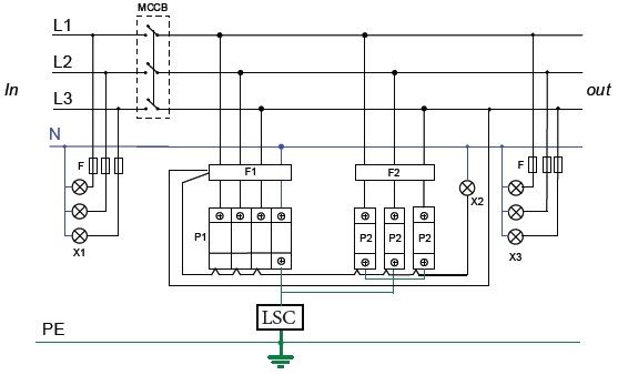SDS254VG-43HF-125A/C là tủ cắt lọc sét cho nguồn điện 3 pha 4 dây (3L+N) chịu dòng tải đến 125A mỗi pha, được phối hợp từ các module chống sét dạng DINrail của hãng Citel Pháp, bảo vệ đa tầng với các chức năng bảo vệ Type 1+2+3 cùng với bộ ngắt mạch bằng cầu chì chuyên dụng SFD1-25S-31 và thiết bị đếm và ghi nhận xung LSC-A.