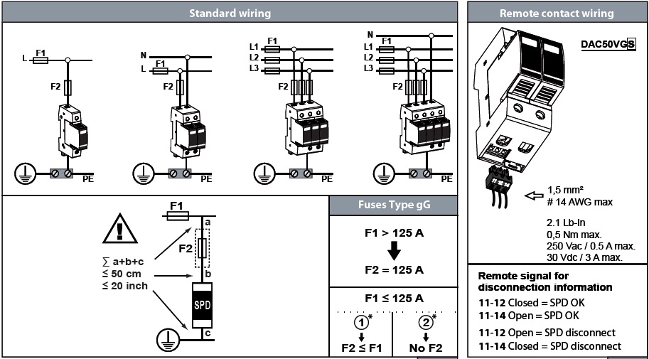 | Tiếp điểm kết nối báo hiệu từ xa | Chỉ có với DAC50VGS-10-275 |